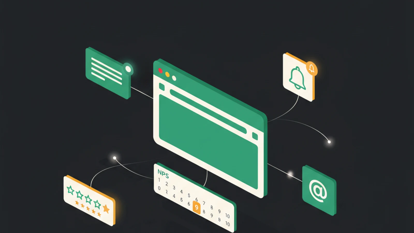 Capture leads with floating forms, qualify them with the AI agent, and let visitors book demos without leaving your site. Run NPS surveys to measure product-market fit.